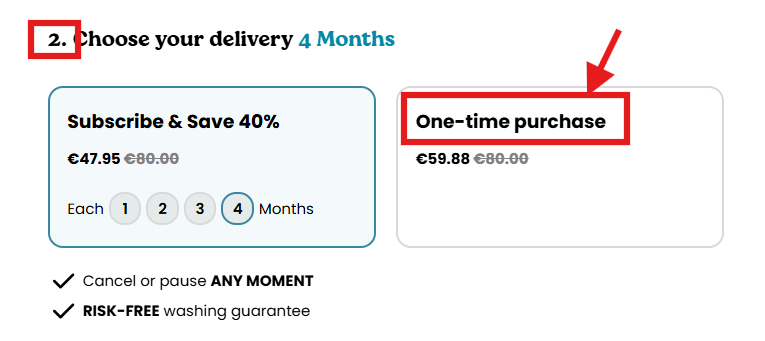 How can I order without a subscription?Updated 3 days agoIf you do not want a subscription, simply click on “one time” in step 2. Your order will then be placed as a regular one time purchase. Was this article helpful? YesNo